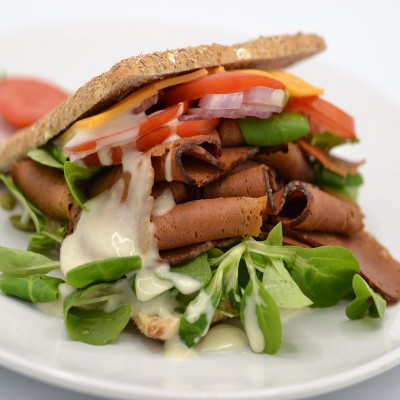 Sabrosa carne vegetal asada estilo Roast Beef en su versión 100% vegana y ecológica.